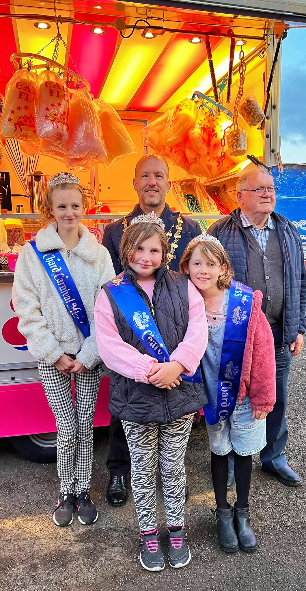 Sees the Carnival Royalty and the Mayor at the Fair.
