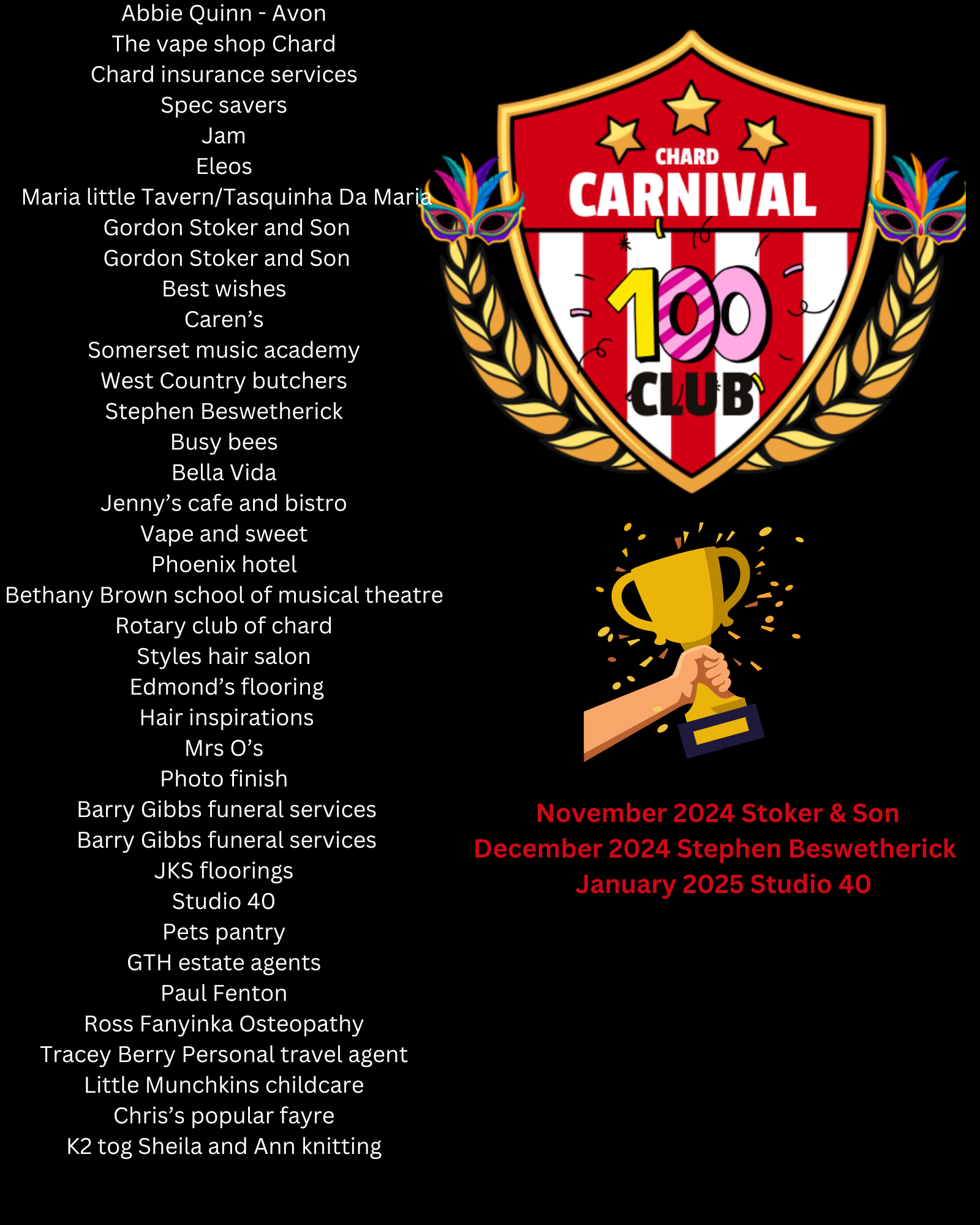 Get your business listed & promoted if won - When entered, please email web@chardcarnival.co.uk with your business name.